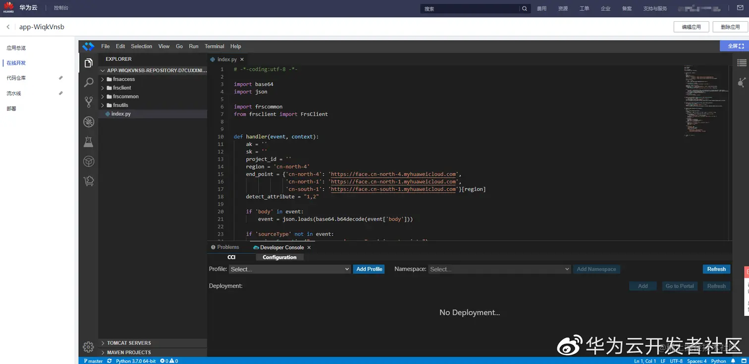 3个小时后……,在大V远程电话指导下,小Hi终于解决了问题。这样的效率太低了,要是大V能远程开发很快就能解决,也不用2个人投入了,小Hi突然想到上次使用的华为云DevStar平台好像有远程开发的能力,如果能引入到公司,以后就不会影响和小V的约会了。
