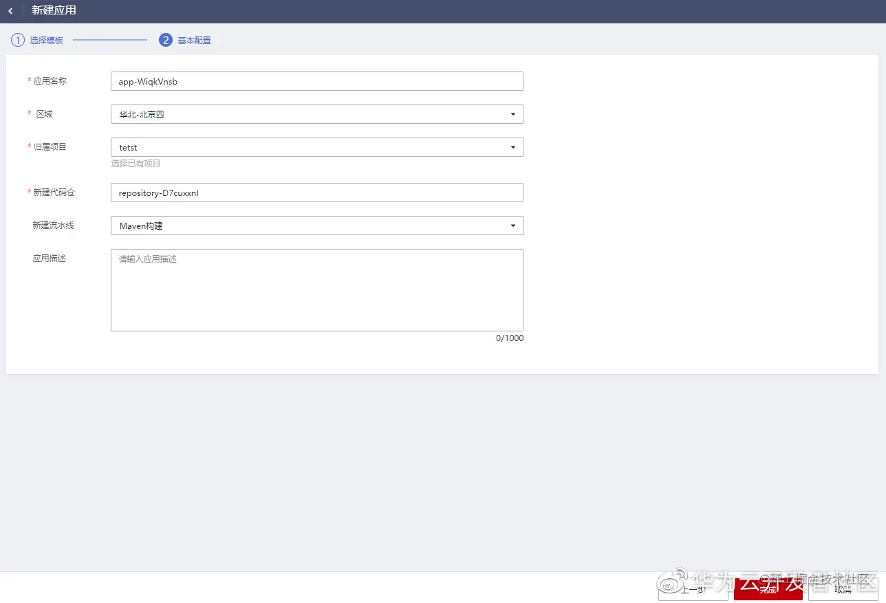 在我的应用界面可以看到应用列表,点击右上角“新建应用”进入应用创建向导: