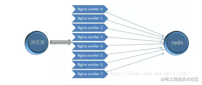 Nginx的所有worker进程都可以处理前端请求转发到redis,只有nginx worker 0才运行定时任务定时更新redis,lua脚本中通过ngx.worker.id()获取worker进程编号。