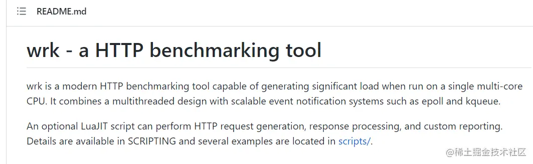 根据官方的说明,wrk 是一个HTTP基准测试工具