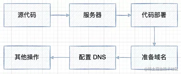 假如我们要上线个人博客网站,供其他同学访问,那么需要经历如下步骤: