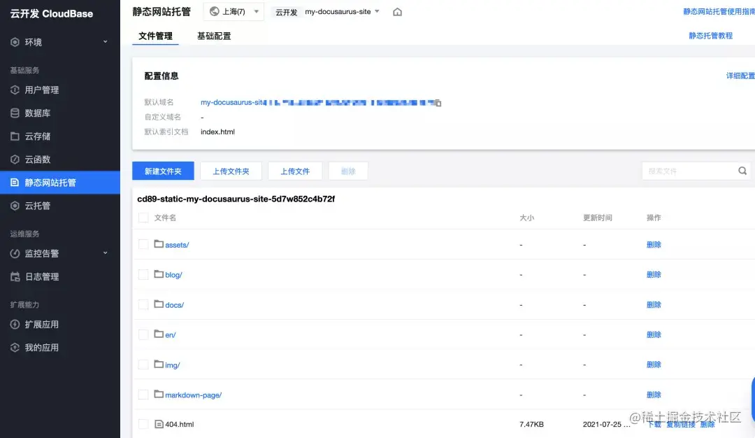 其实在部署过程中,系统会自动创建一个 云开发 环境,根据配置的命令自动构建项目,将构建产物放到 静态网站托管 上。