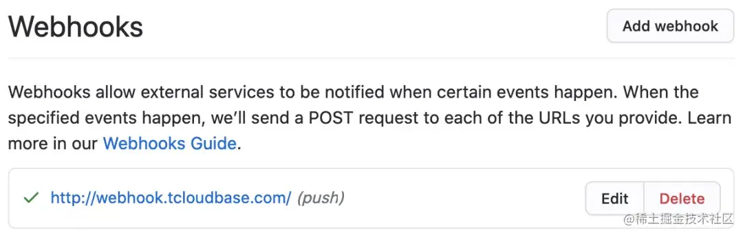 Webify 会自动给 Git 仓库配置 Webhooks,后续每当仓库的代码发生变更(push)时,都会自动触发应用的重新部署,无需再跑到服务器上改代码了!
