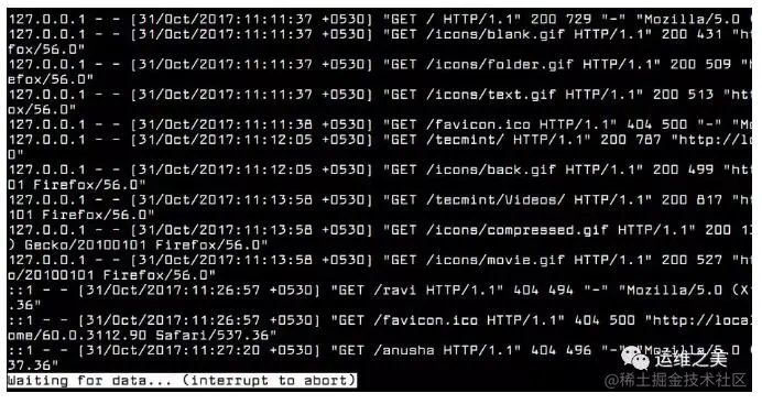 最后你可以用 less 命令 查看日志文件,然后按下 Shift+F 也能实时查看日志内容。