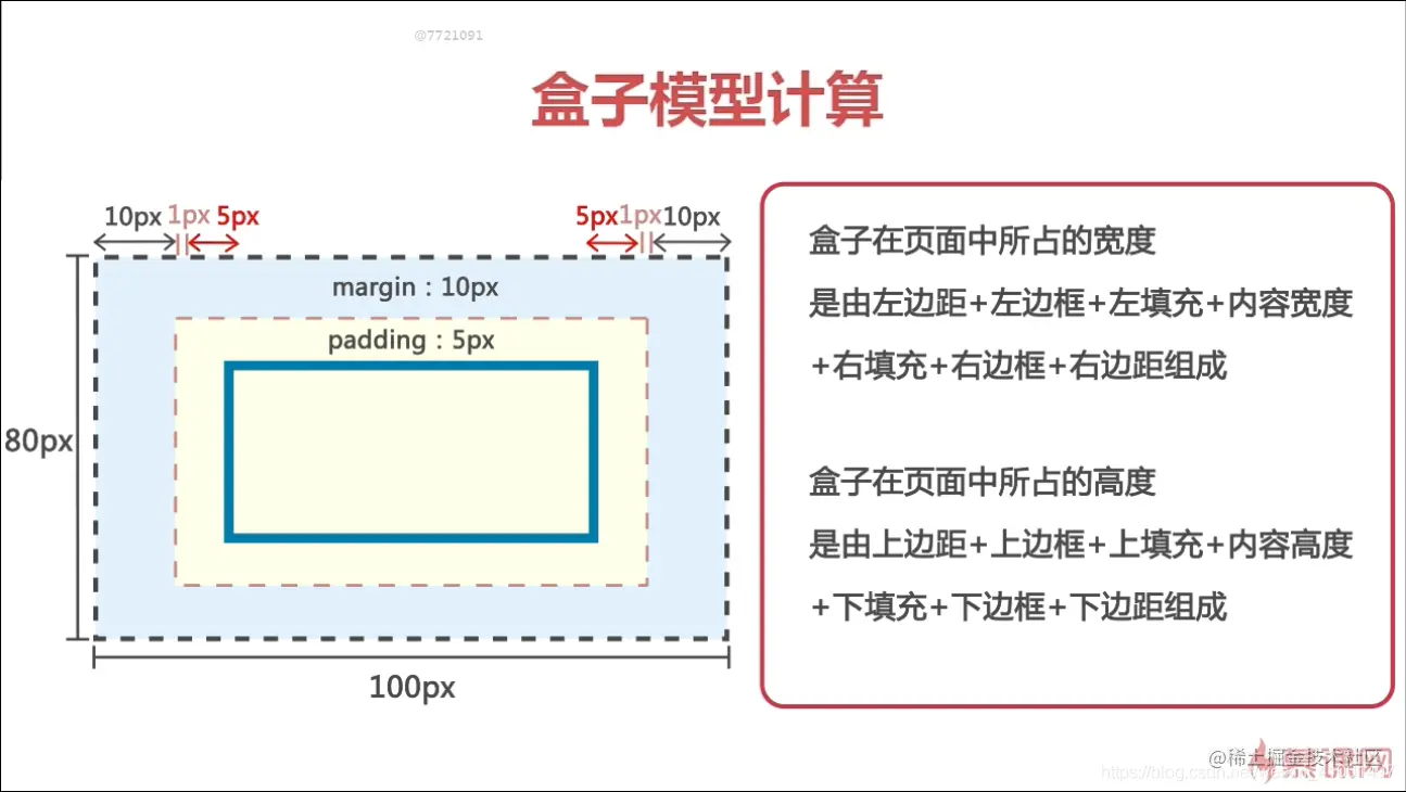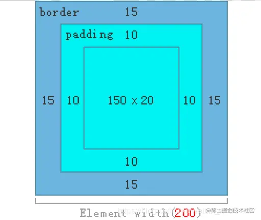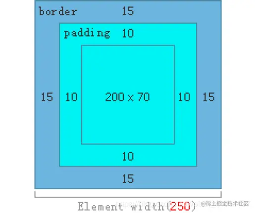 - content-box:在宽度和高度之外绘制元素的内边距和边框(默认属性)