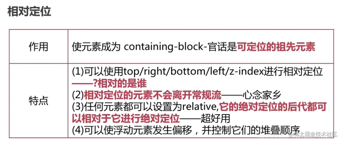 设置为relative、absolute、fixed的元素就成为定位祖先元素,但不能是设置为static的元素。