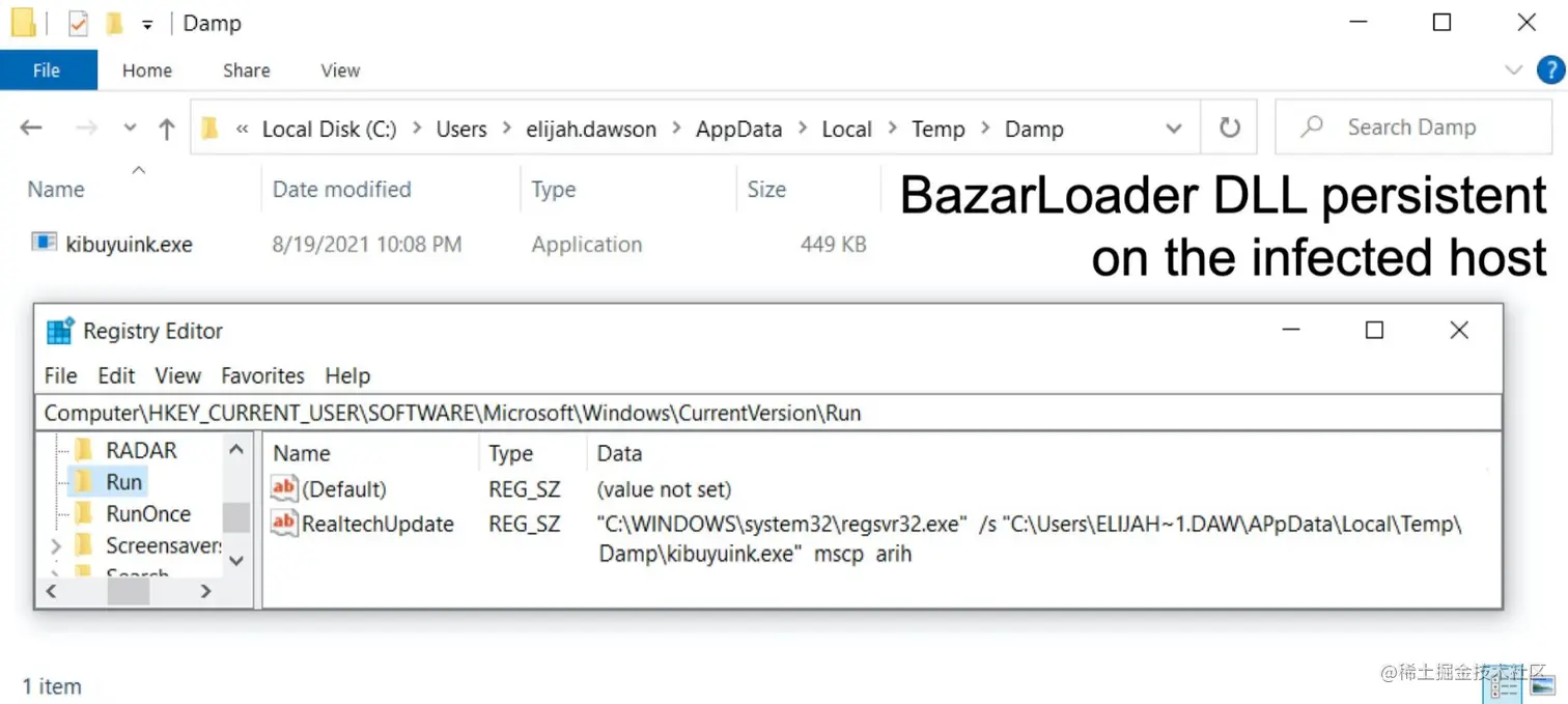 BazarLoader DLL会复制到另一个位置,并修改Windows注册表。