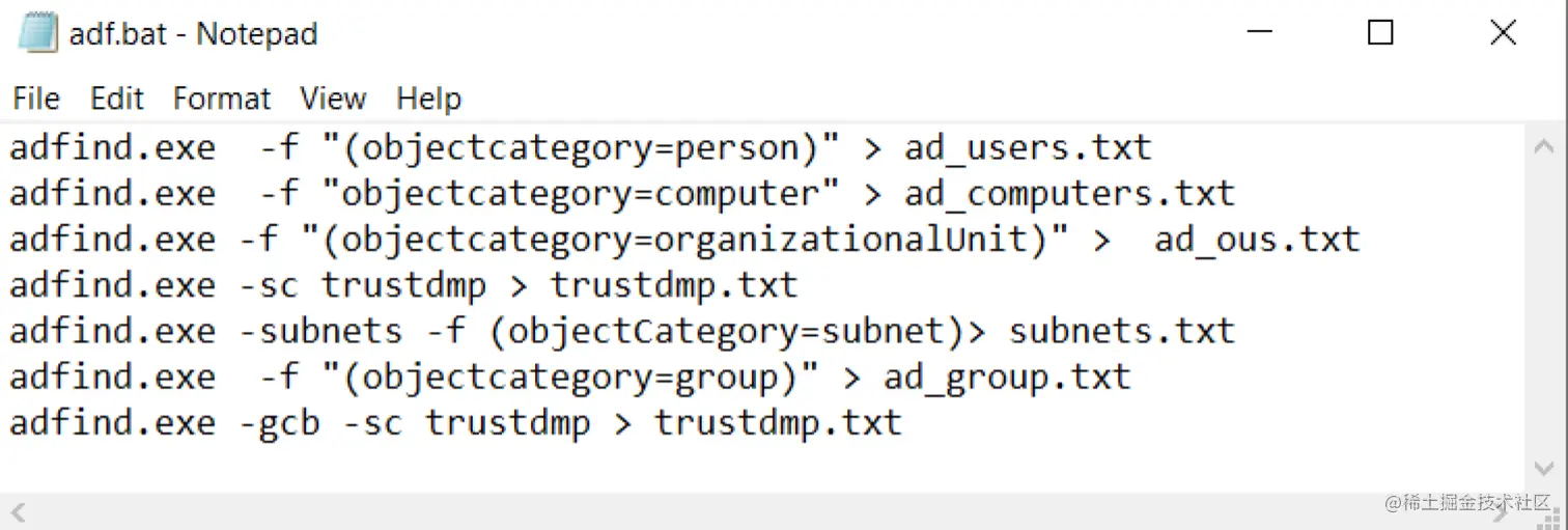 adfind.exe -sc trustdmp > trustdmp.txt