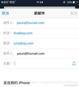 发送成功后,在QQ邮箱打开的界面: