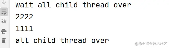 System.out.println("wait all child thread over");