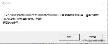 启动猿大师后会有如下弹窗,包含UID等信息,请截图发给猿大师客服开通试用授权。