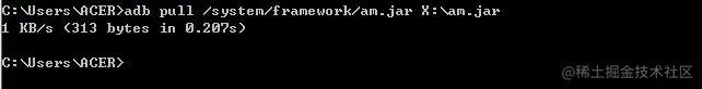 adb pull /system/framework/am.jar /sdcard,运行结果如下: