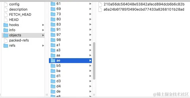 | objects | 文件夹 | 目录存储所有数据内容, 这就是实际意义上的 git数据库, 存数据的地方; 并且存了所有的历史记录; |
