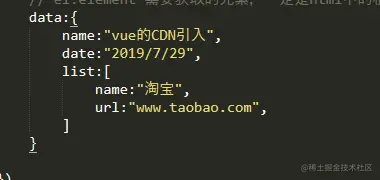 data用于数据的存储,格式为data:{},大括号中间则是具体的数据和值,有点类似java中map的形式,,data可以存储各种的数据类型,每个数据用,进行分割开来。比如