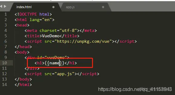 然后在html文件的框架内引入CDN,并且命名title,如下图所示