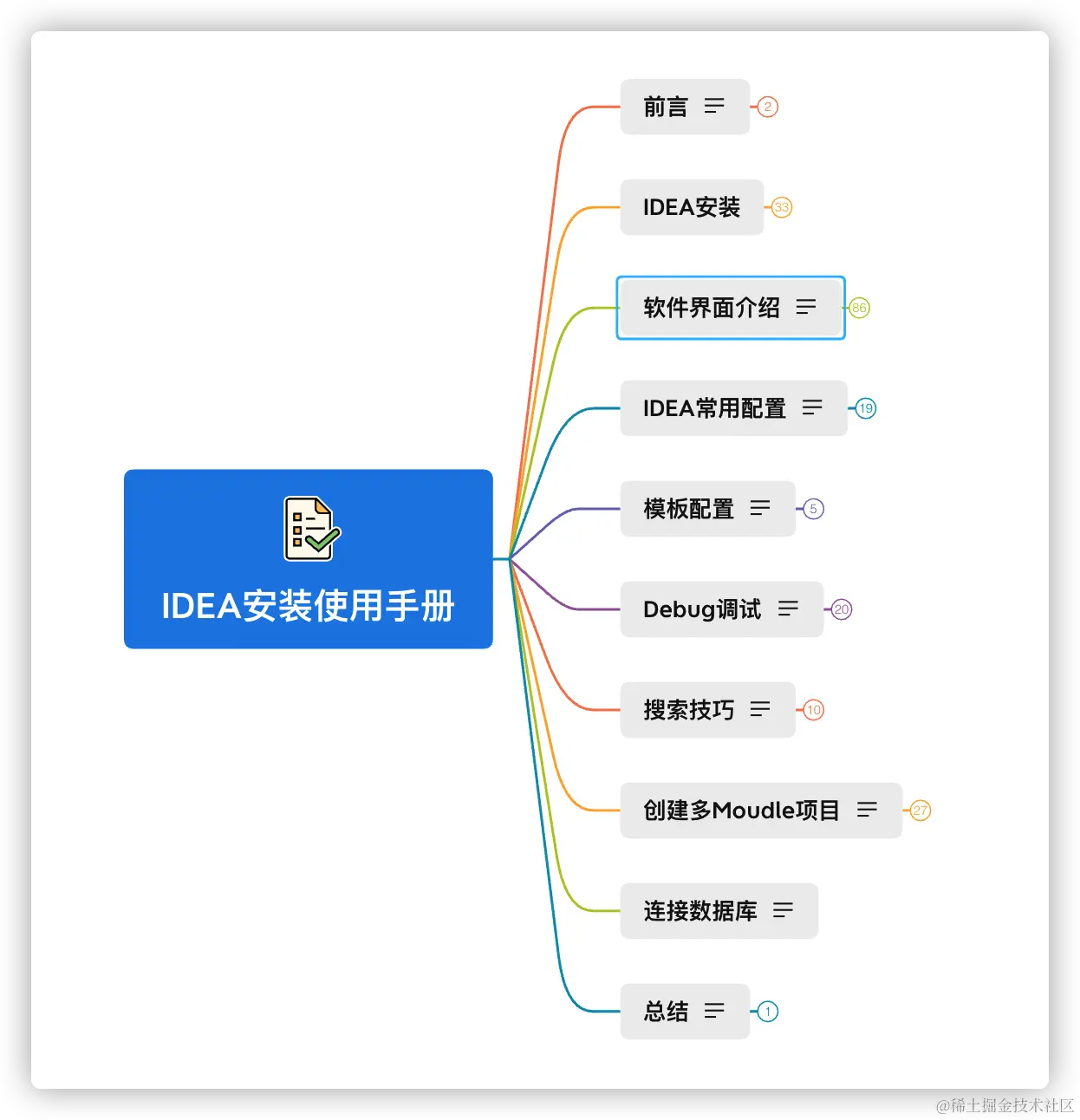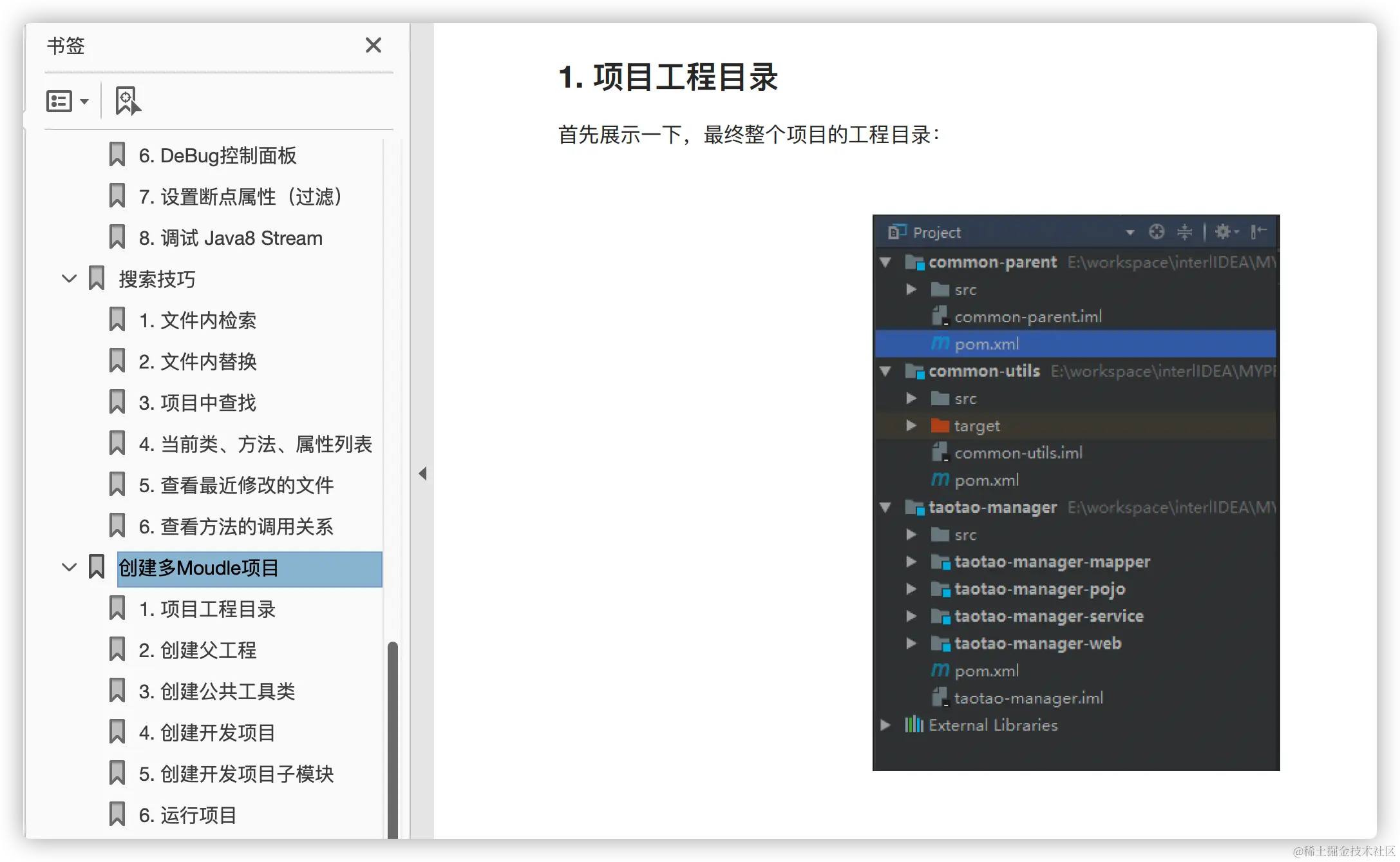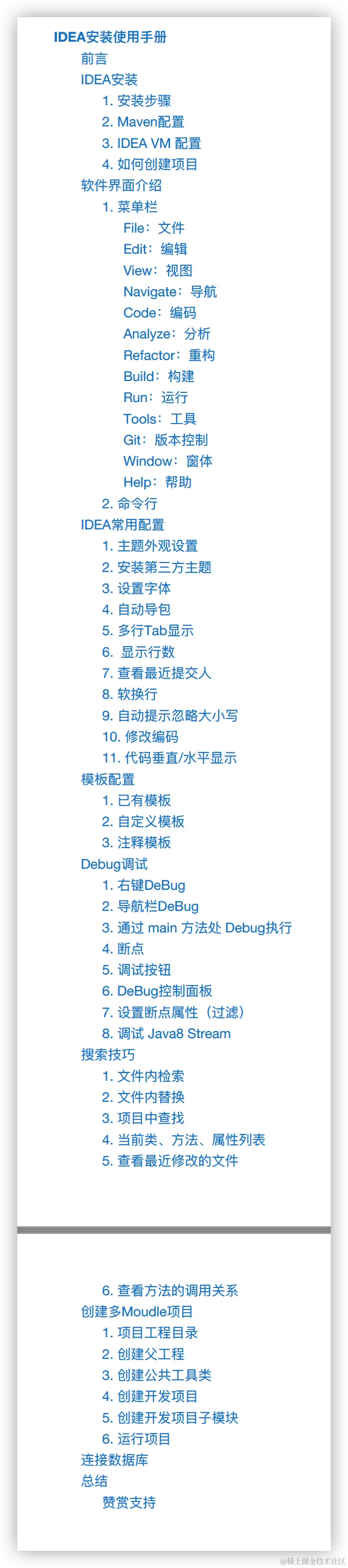 这份手册也是整理了新手使用 IDEA 过程中容易产生疑惑的地方,这里给大家看下目录: