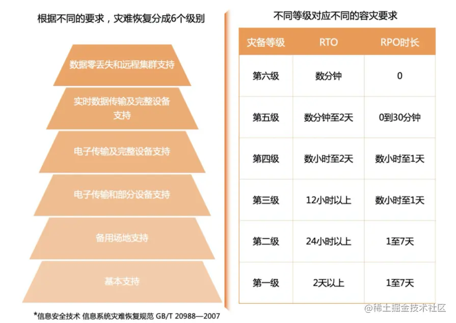 国家出台了相关标准,把容灾能力分为六个等级,如下图所示
