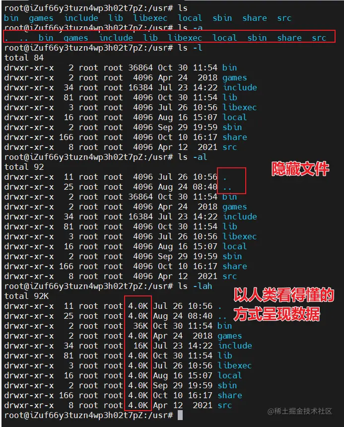ls 命令,在 linux 中必须会使用的命令 ,参数也很多,说一下我们经常用的