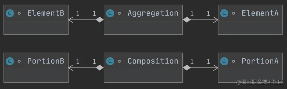 - 组合/聚合复用:新对象应使用部分已有的对象,使其成为新对象组成部分,实现已有功能的复用,以此降低单个类的复杂程度。