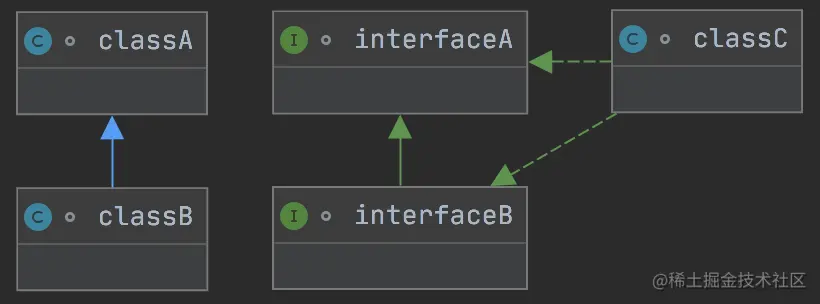 继承关系:强调属性和方法从父类向子类的传承。实现关系:强调描述抽象和具体实现的逻辑。