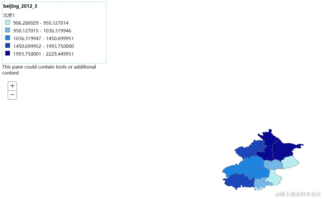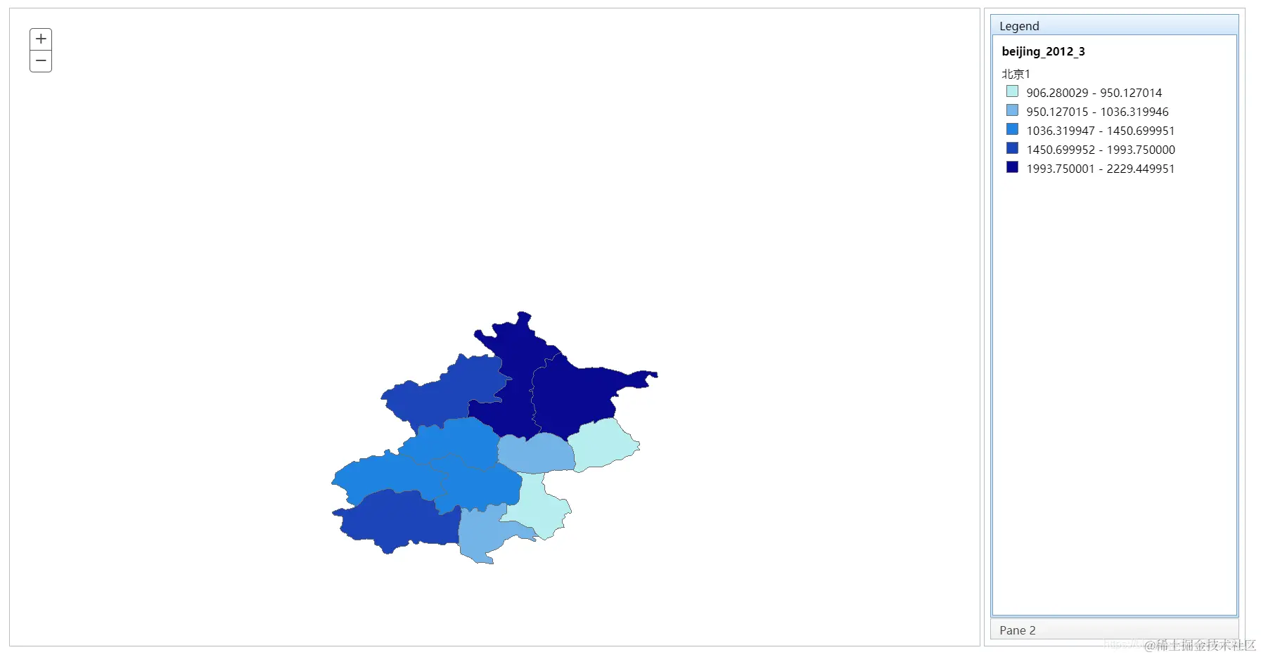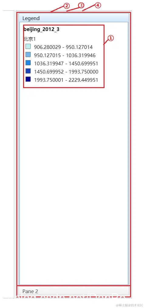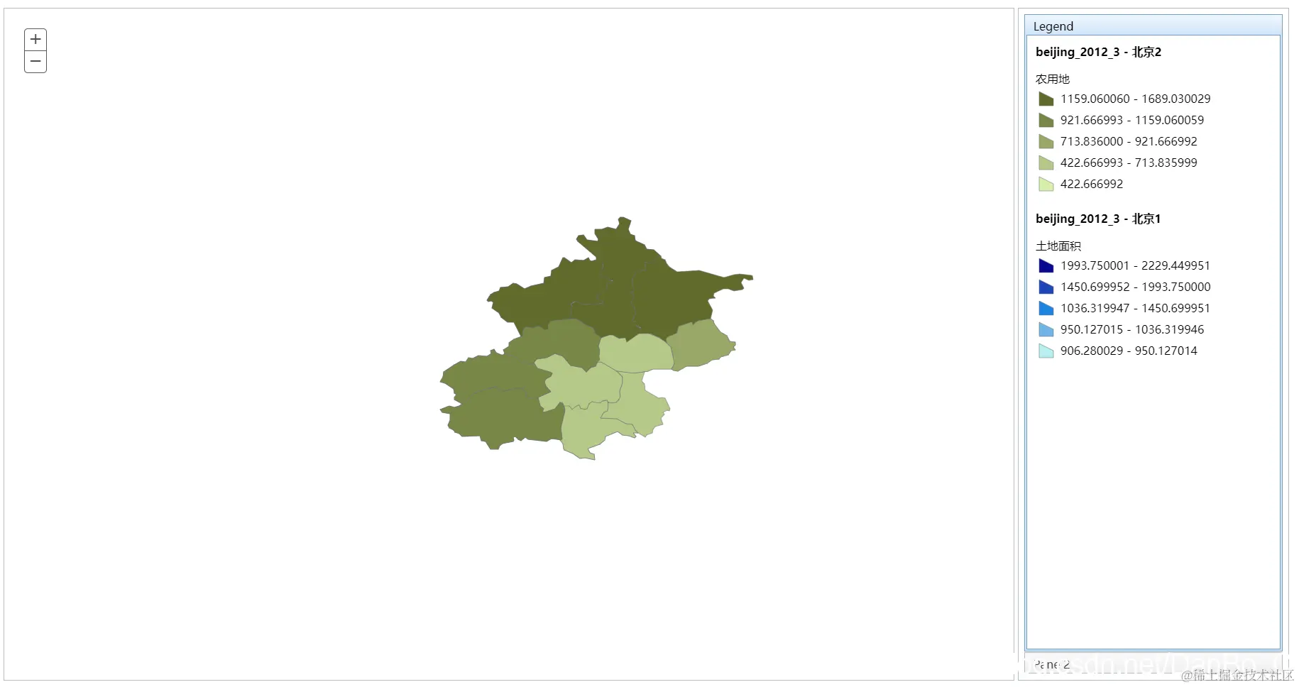 除了①中的是必须获取的数据之外,剩余的有都是由Esri官方提供的方便开发的方法。不妨尝试进一步美化。这样看来,右侧增加的图例框的真实存在的div,但是它也是获取map中的数据。所以它更像是map对象的一种方法,而非属性。这也是和鹰眼图比较根本上的区别。