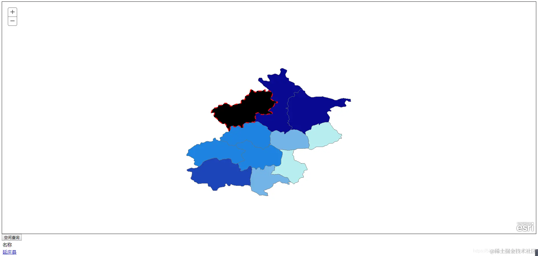 //定义一个绘图工具 var toolBar = new Draw(map); //给button绑定事件 on(dom.byId("Btn"),"click",function(){ //激活绘图工具,我要绘制一个面图形 toolBar.activate(Draw.POLYGON); }) on(toolBar, "draw-complete", function (result) { //获得绘图得到的面 var geometry=result.geometry; //关闭绘图工具 toolBar.deactivate(); queryGraphic(geometry); }); -