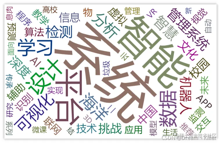 - 作品中的热门词大数据、人工智能、算法、可视化、管理系统、机器人等。