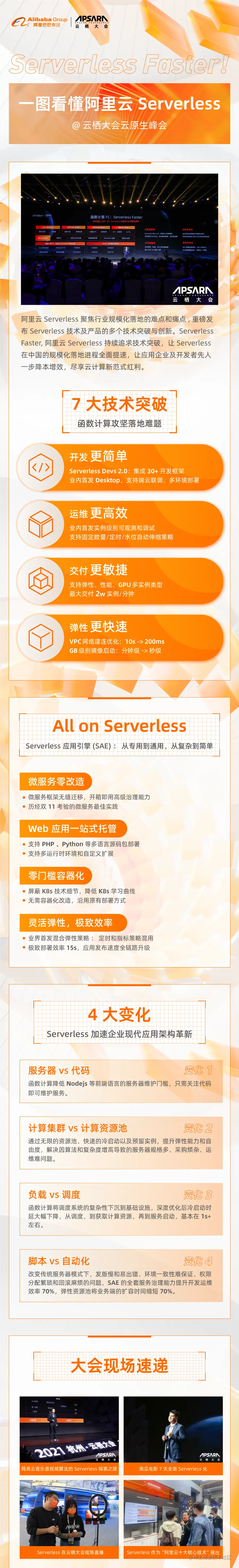 2021 云栖大会现场,阿里巴巴研究员、阿里云智能云原生应用平台总经理 丁宇(叔同)重磅发布了函数计算的 7 大技术创新和突破,加速现代应用架构的革新。
