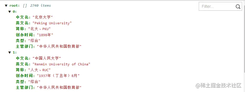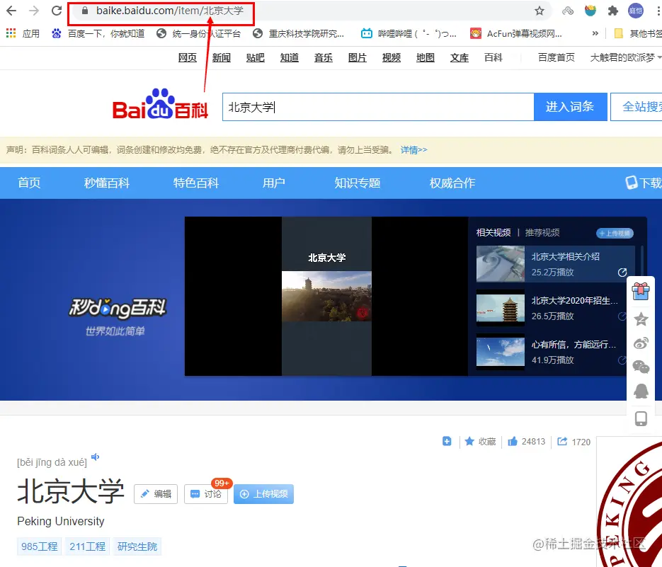 可以看到高校的百度百科的构成是 https://baike.baidu.com/item/ + "高校名称"