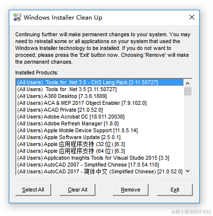 不能删除的软件,就使用 Windows Install Clean Up,只要是基于 Windows Installer 安装技术安装的软件,都可以进行暴力删除;换句话说,没有删不了的软件。