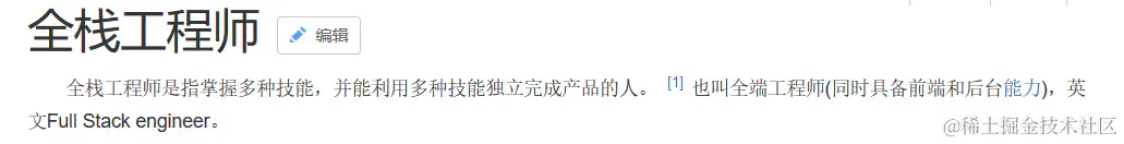 那么什么是全栈工程师呢?大家都各有说辞,有的人说精通前后端,有的人说初级架构师,那么不妨看看百度词条:
