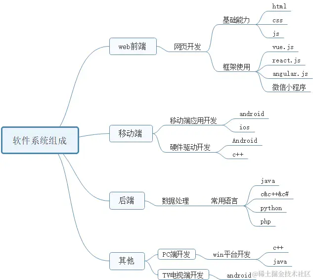 后端开发而后也分为大数据方向,分布式系统架构方向等,服务器方面后端也要学会常用linux命令,熟悉常用的web应用服务器,如tomcat,Apache ,nginx等,比如C语言,c++相关开发选择vs,java开发选择idea,es等,详细请查看java团长的博客www.cnblogs.com/java1024/p/…,他的体系介绍比较完整。