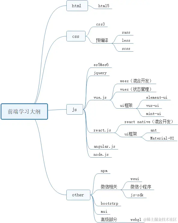 一般前端开发,多指web前端开发,主要为网页开发,现在同是包含微信小程序开发,前端开发学习大纲分为pc端和移动端,大体学习大纲为: