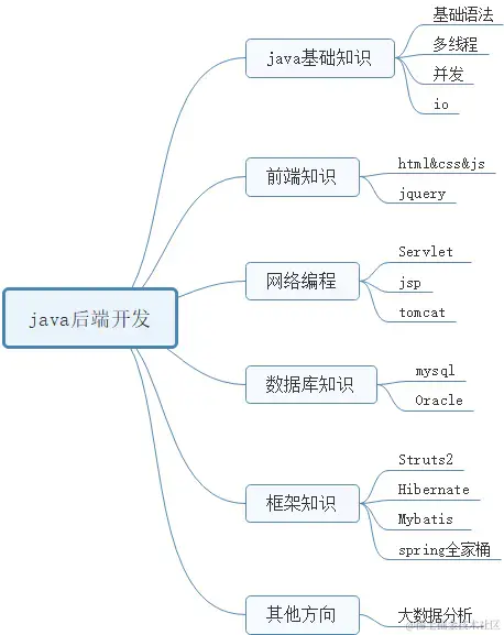 后端开发目前常用为java,c++,c,python,php等,我这里就列举java后端学习大概方向: