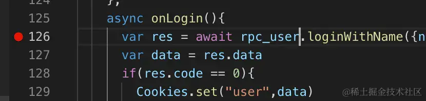 上面的126行 var res = await ...... 就不能设置断点。vscode 会提示你 unverified breakpoint 。