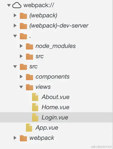 发现问题了没有。Login.vue 文件在 webpack:///src/views/ 里面。而 rpc_user.js 却在 webpack:///./src/rpc/ 里面。就那么一点点差异。另外,如果直接在chrome 的rpc_user.js 里面打断点是没有问题的。也就是说vscode 并不能在本地项目找到 webpack 上对应的文件。知道了问题就好解决了。就是要告诉vscode 什么文件在什么文件夹。