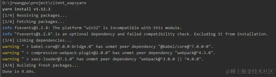 An unexpected error occurred: “EPERM: operation not permitted, unlink 盏茶作酒kk 2021-11-01 535 阅读1分钟 1、安装划动切换插件Swiper出现的问题,报错提示unlink '\\node_modules\\node-sass\\vendor\\win32-x64-57\\binding.node'" 2、网上有解决方法但是没有尝试成功,最后解决方式是删除binding.node文件后,重新执行yarn命令,重新安装依赖 3、再执行命令yarn add vue-awesome-swiper --save 就安装成功了