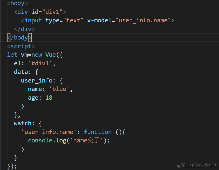 - watch主要用于监控vue实例的变化,它监控的变量当然必须在data里面声明才可以,它可以监控一个变量,也可以是一个对象,但是我们不能类似这样监控,比如: