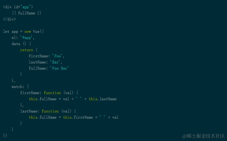 Vue确实提供了一种更通用的方式来观察和响应Vue实例上的数据变动:watch属性。当你有一些数据需要随着其它数据变动而变动时,你很容易滥用watch。然而,通常更好的想法是使用计算属性而不是命令式的watch回调。比如下面的示例: