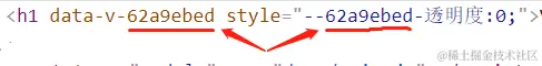 可以看到Vue把CSS变量也编译了一个和**data-v-**后面的那串随机字符一样的: