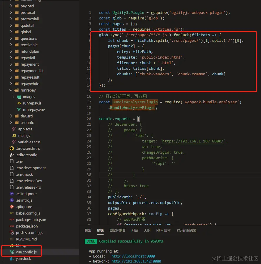 那么这些页面最终也需要打包,最核心的就是下面方框里的代码了,chunk最终就是每个页面的文件名,对应的就是文件名.html.