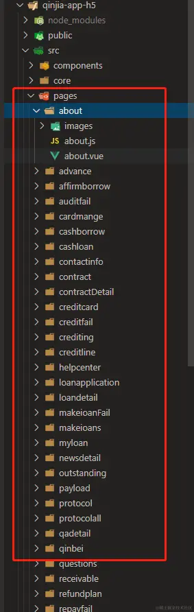 首先多页开发,肯定是一个页面就是一个单独文件,每个文件也有自己的.vue .js 和compoent自身组件,如下page里的一个文件就是一个页面。