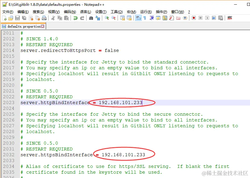 5) 找到 server.httpBindInterface,设定服务器的IP地址。这里就设定你的服务器IP。