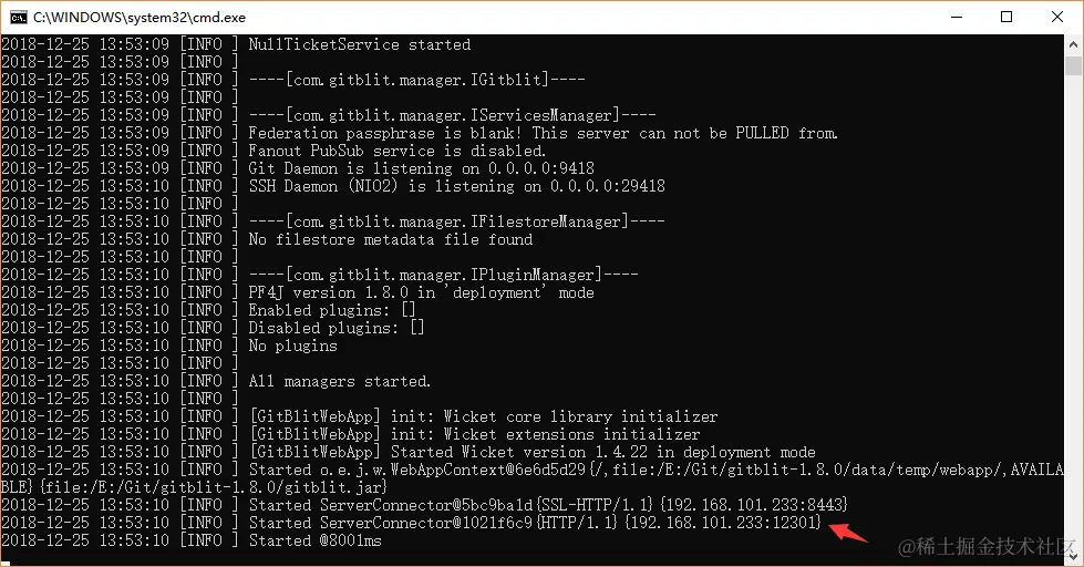 1) 找到 gitblit 目录中的 gitblit.cmd 文件,双击运行。