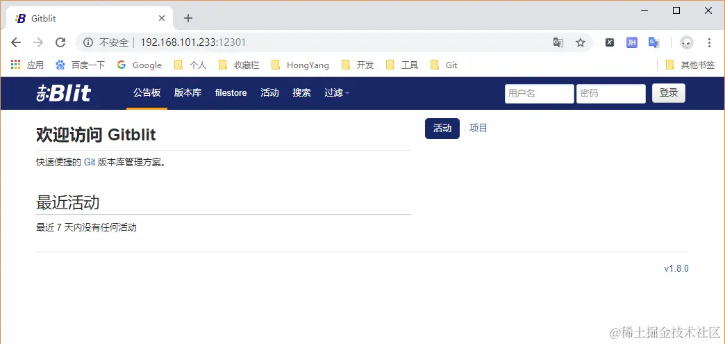 3) 在浏览器中打开,现在就可以使用GitBlit了。