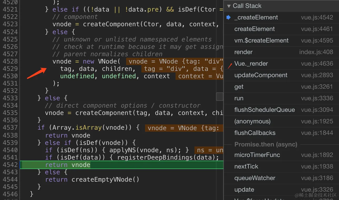 找到关键的地方,调试分析发现每次都会创建新的VNode对象