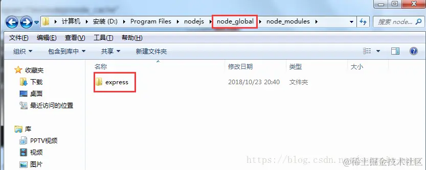 全局安装:npm install express -g 会安装到指定的目录(node_global)