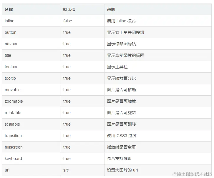 Options: { "inline": true, "button": true, "navbar": true, "title": true, "toolbar": true, "tooltip": true, "movable": true, "zoomable": true, "rotatable": true, "scalable": true, "transition": true, "fullscreen": true, "keyboard": true, "url": "data-source" }