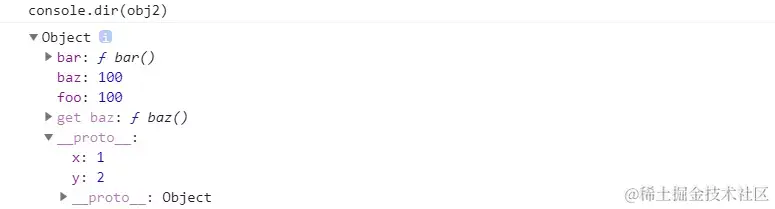 上图中,obj 对象的 foo 属性是一个取值函数,Object.assign不会复制这个取值函数,只会拿到值以后,将这个值赋上去。
