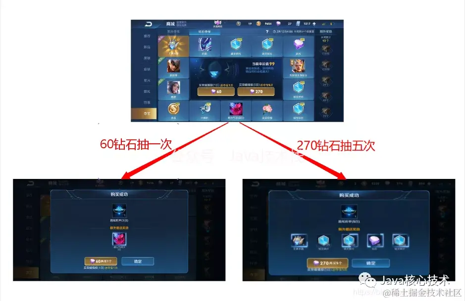 针对以上描述,王者荣耀中的夺宝就是责任链模式在王者荣耀中应用的例子。在这个问题中,玩家通过点击60钻石/积分抽一次或者270钻石/积分抽五次实现抽奖结果。